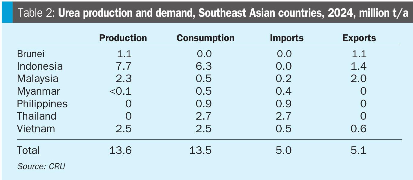 Already a large urea supplier to the region, Indonesia has plans for several new plants to monetise its natural gas resources.