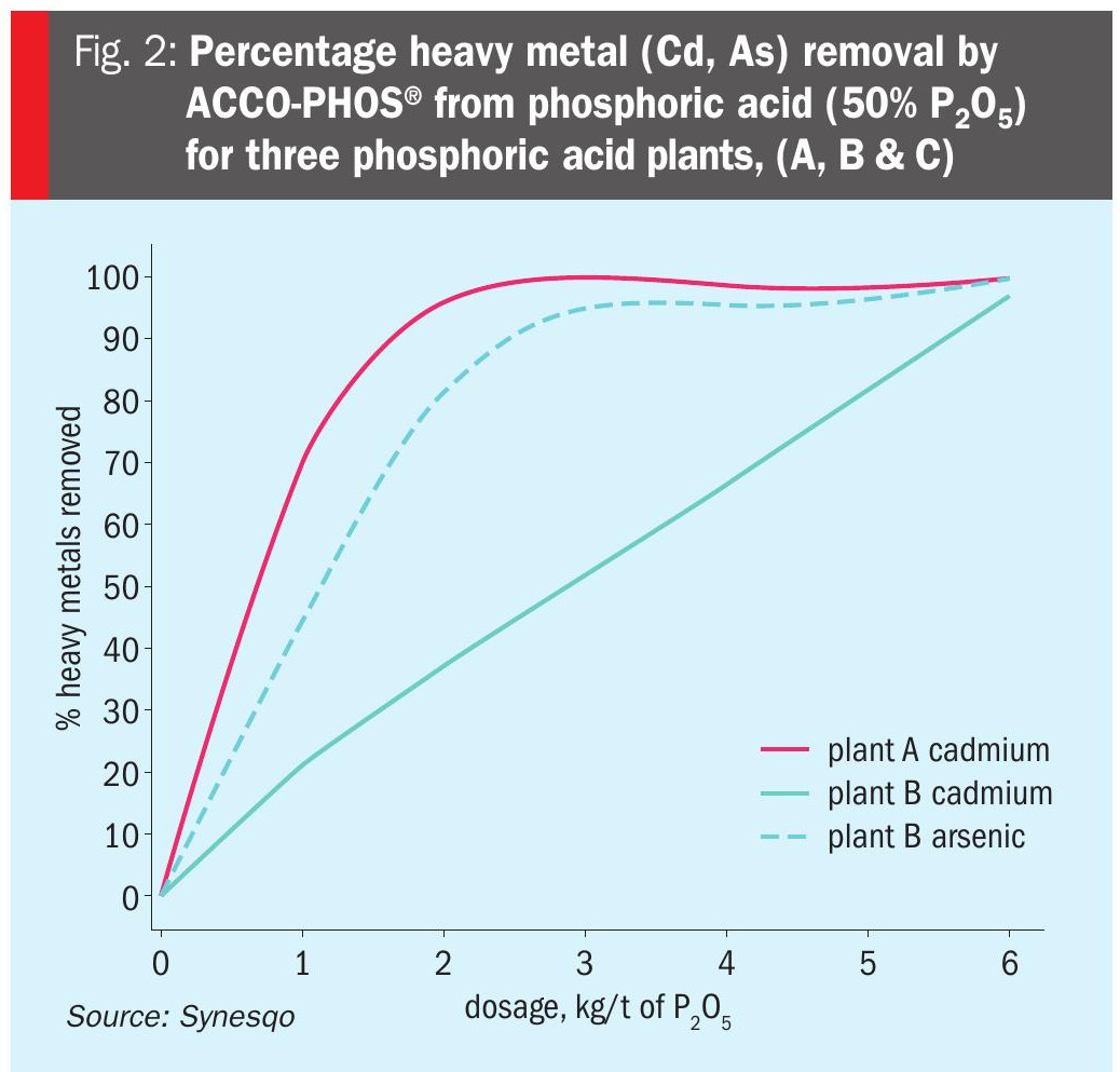 The extent of heavy metal removal and dosing requirements – being influenced by the concentration of other competing ions such as zinc, copper and mercury – will vary according to the chemical characteristics of the phosphoric acid.