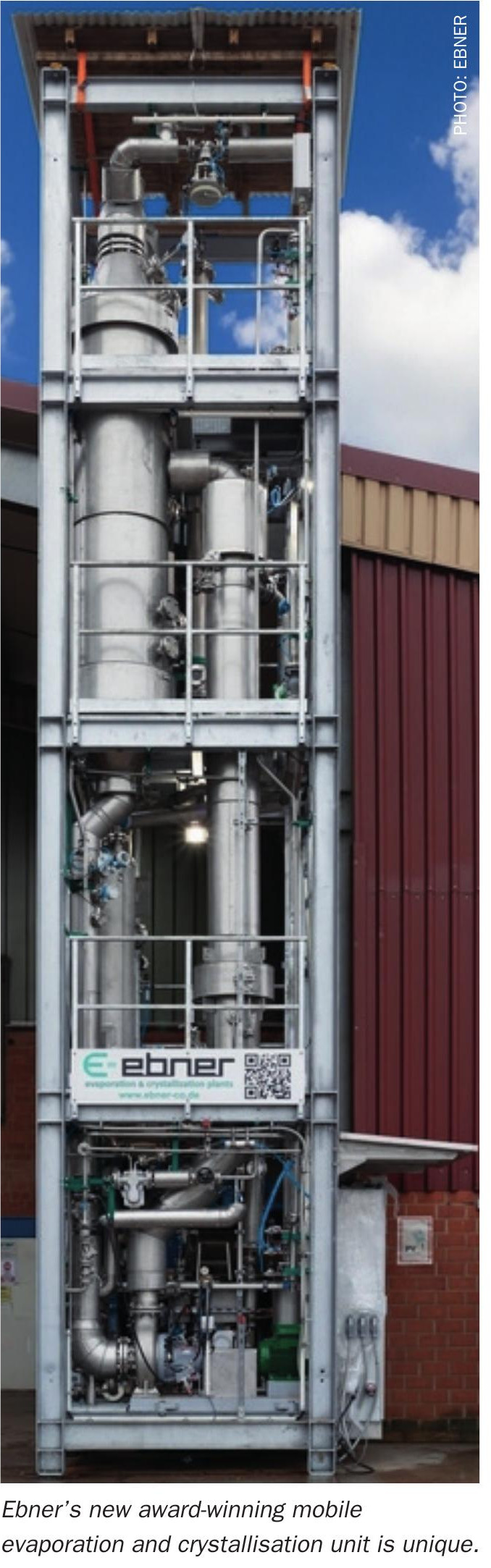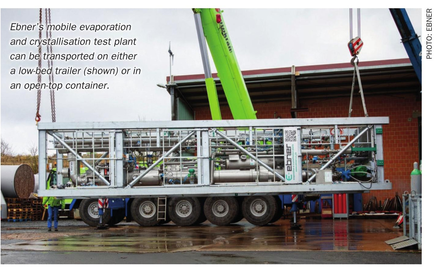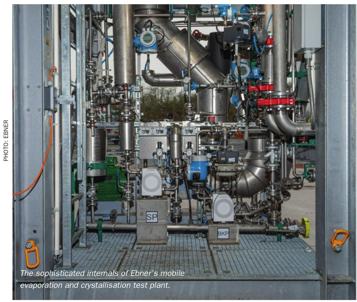 Ebner recently developed a mobile test plant that combines evaporation, cooling and crystallisation technologies in one compact unit. The plant, which has won an innovation award, is designed to cover all conventional evaporation and crystallisation processes.