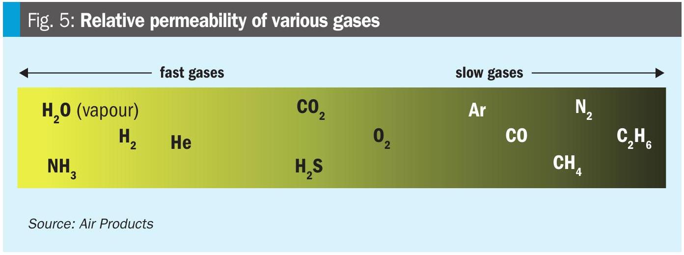 Hydrogen is a fast-permeating gas (Fig. 5) and can efficiently be separated from other slow-permeating gases.