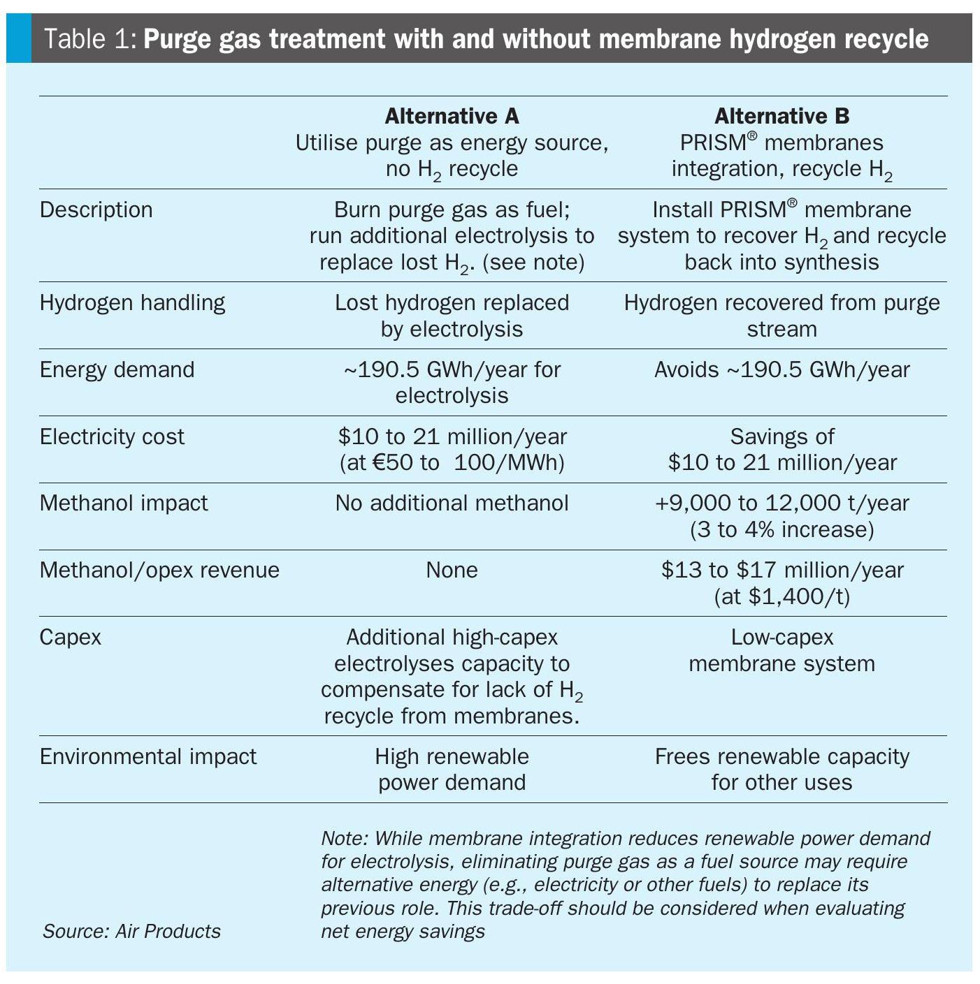 In low-carbon methanol plants, the synthesis loop purge contains valuable hydrogen. How this hydrogen is managed determines both the energy footprint and the economics of the plant. There are two fundamentally different approaches as identified by Alternative A and B in Table 1.