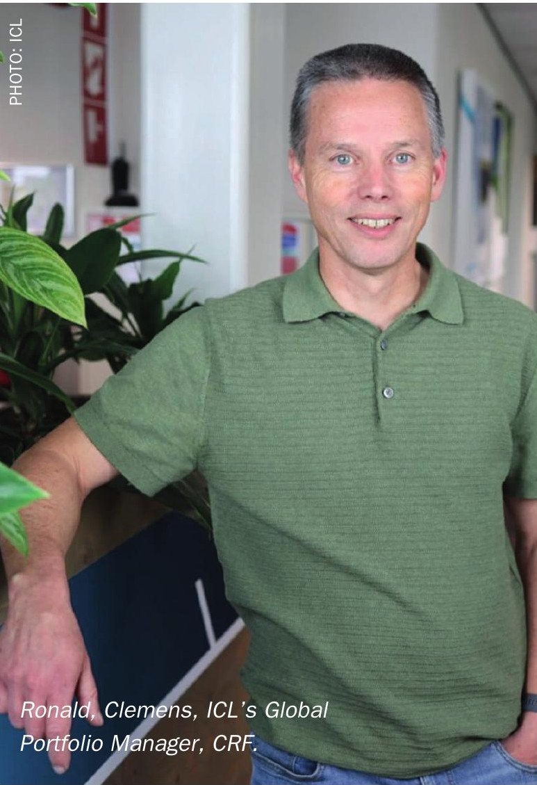 “ICL’s approach is to make nutrients worker harder, aligning nutrient release with crop demand, improving uptake inside the plant, and reducing losses to air, soil and water,” says Ronald Clemens, Global Portfolio Manager for controlled-release fertilizer (CRF).