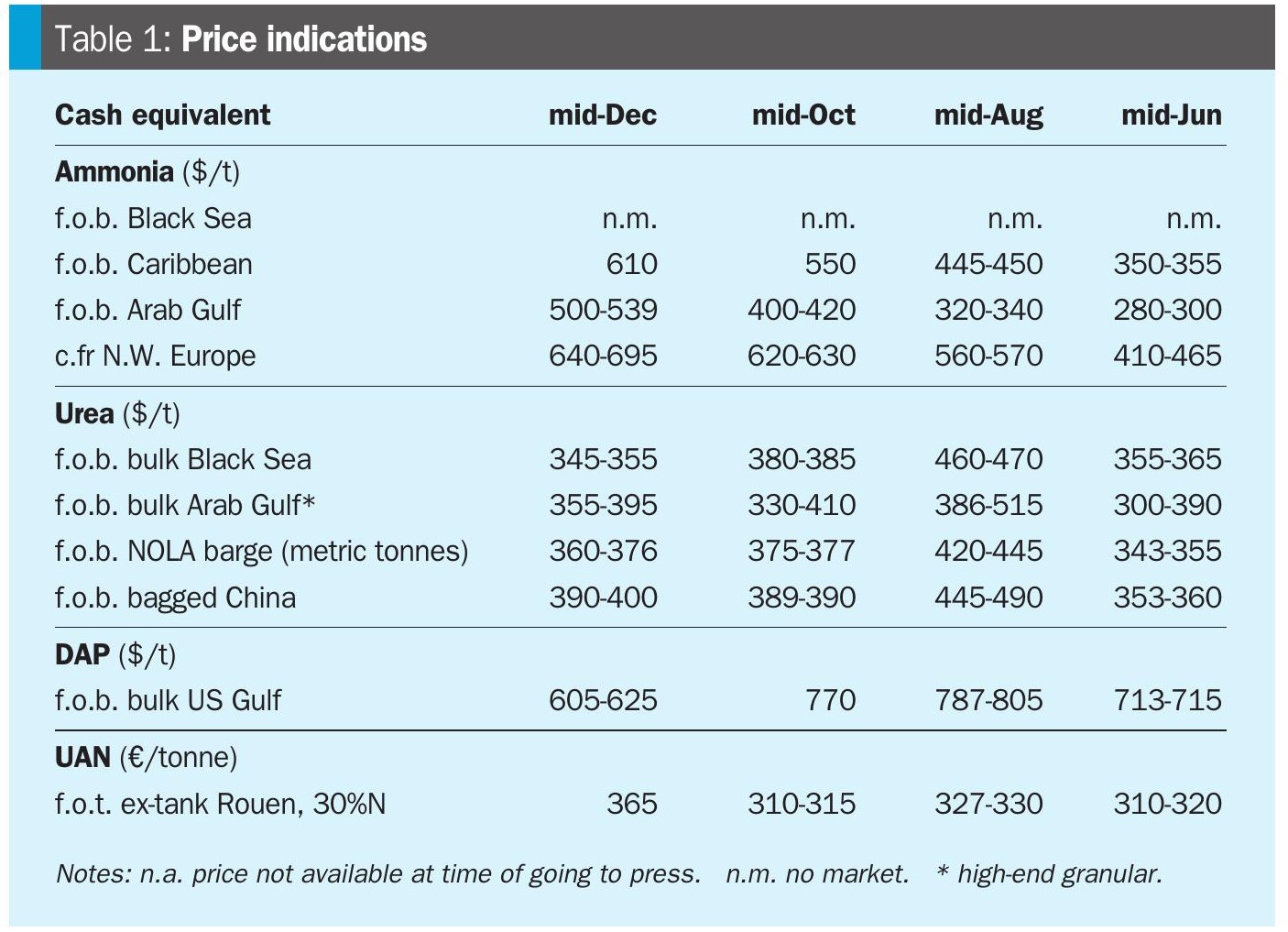 Across the Indian Ocean in the Middle East, prices gained support following India’s developments. Netbacks on the lowest offers were in the low$410s/t f.o.b., though Qatar-Energy concluded February business in the high$410s f.o.b., and was reported to have sold prills via tender in the mid$390s/t f.o.b. In Iran, with just one of seven producers running, prices inched up: the official weekly price was initially $390/t f.o.b., while the sole remaining producer, Pardis, subsequently sold granular material at $397/t f.o.b.; further business is likely above $400/t f.o.b. Seasonal gas curtailments are expected to last until at least February.