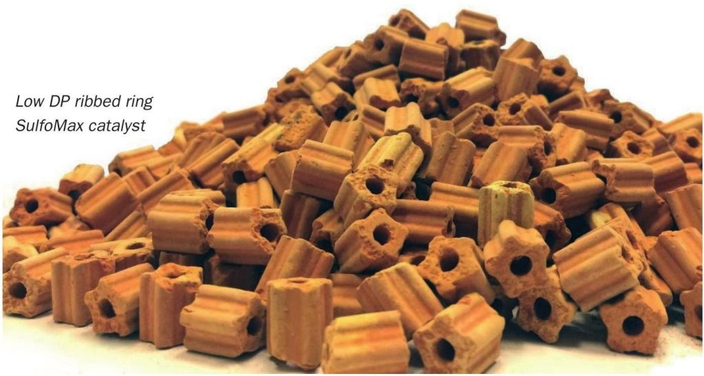 SulfoMax GRR is a dust-guard catalyst designed to capture and retain contaminants while keeping the gas path unrestricted. Because the gas flow remains