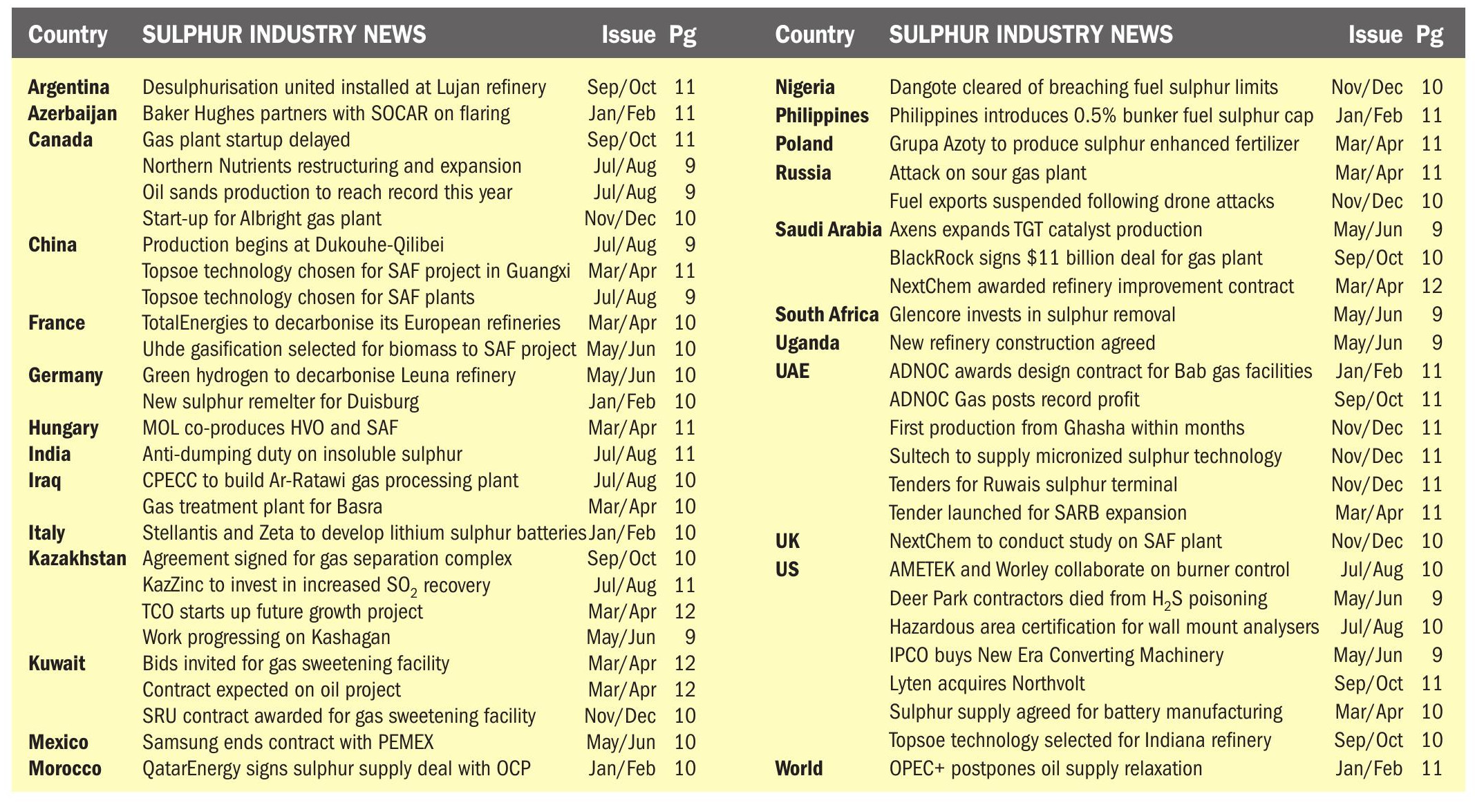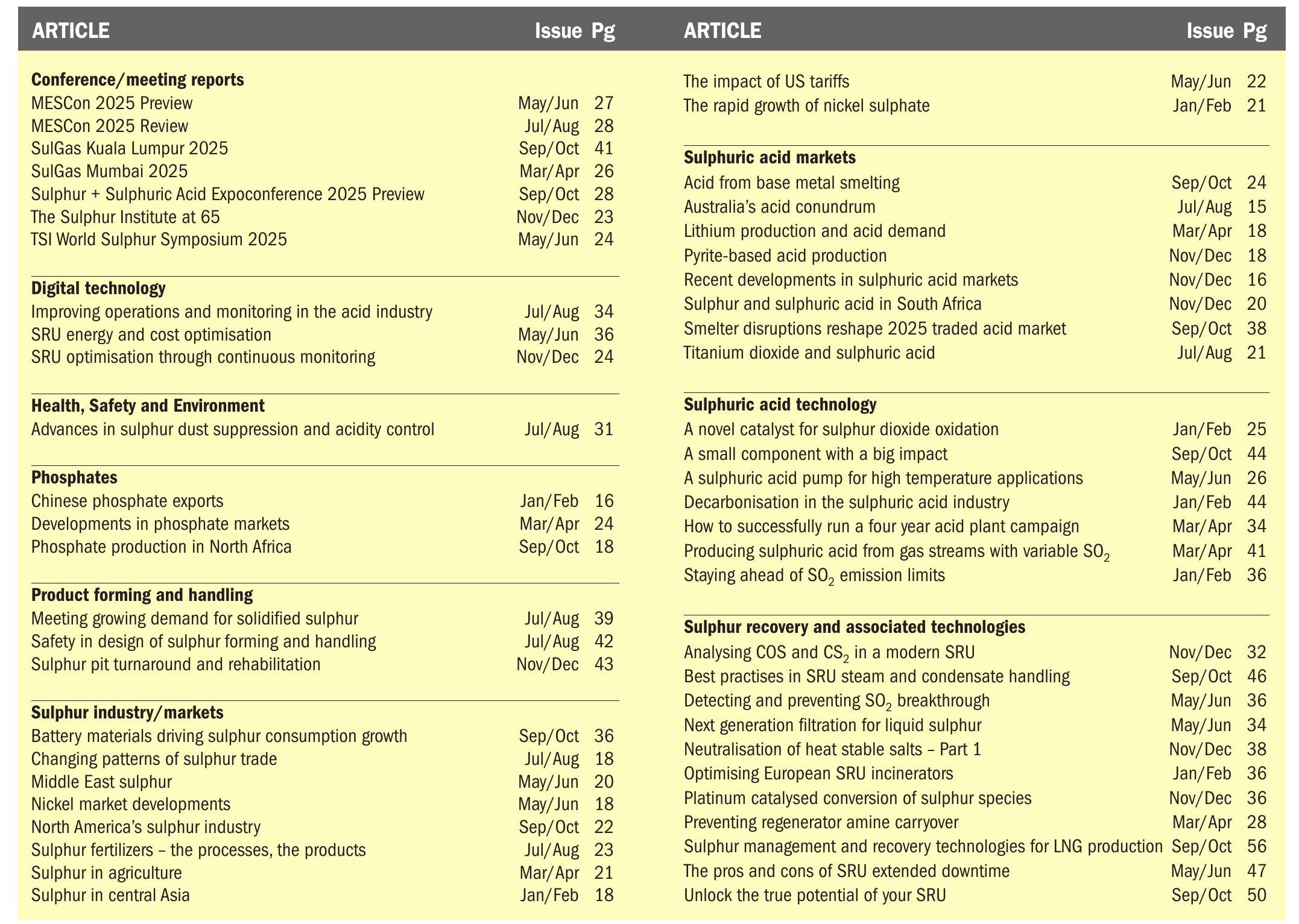 A complete list of all articles and news items appearing in Nitrogen+Syngas magazine during 2025.