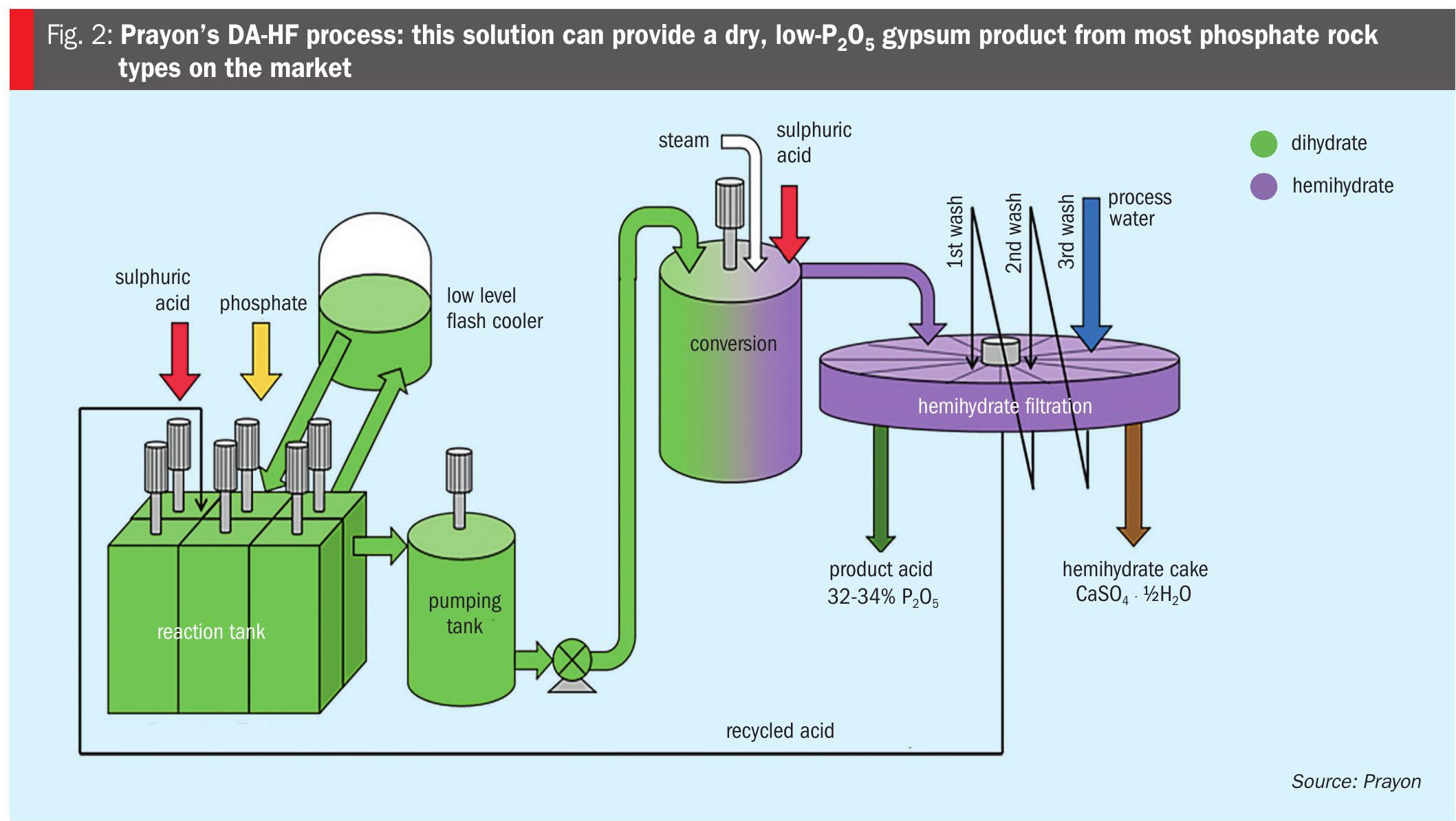 When the objective is to use PG exclusively as a set retarder in the cement industry, we recommend double-crystallization processes such as the Prayon Central Prayon Process (CPP) or the DA-HF process (Figure 2). These technologies offer two major advantages: