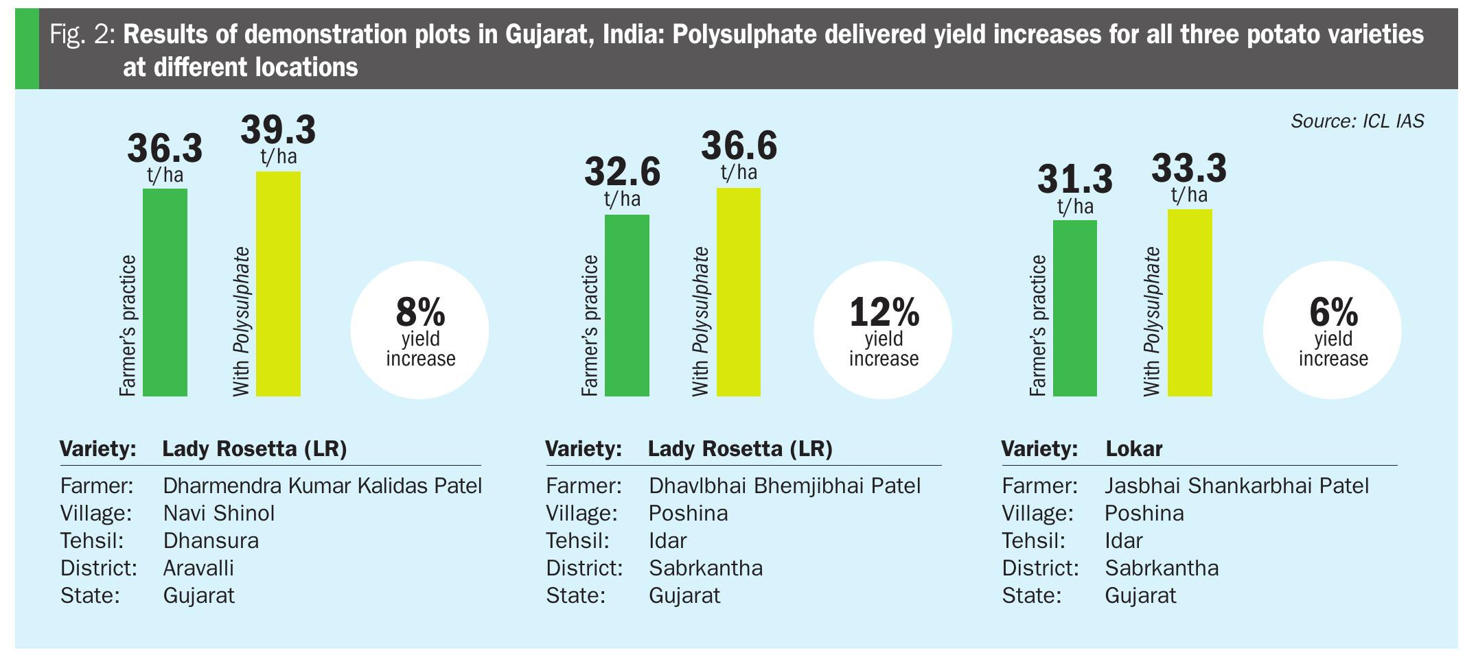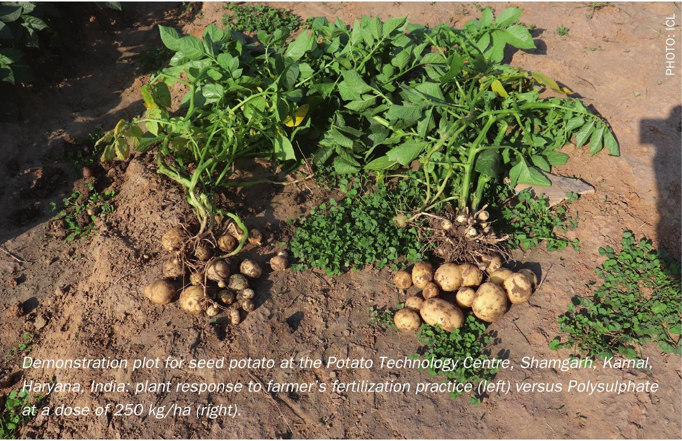 Indeed, potato trials in Gujarat, India, demonstrated that incorporating polyhalite in fertilization programmes could deliver yield increases of 6-12% versus standard farmer practice (Figure 2).