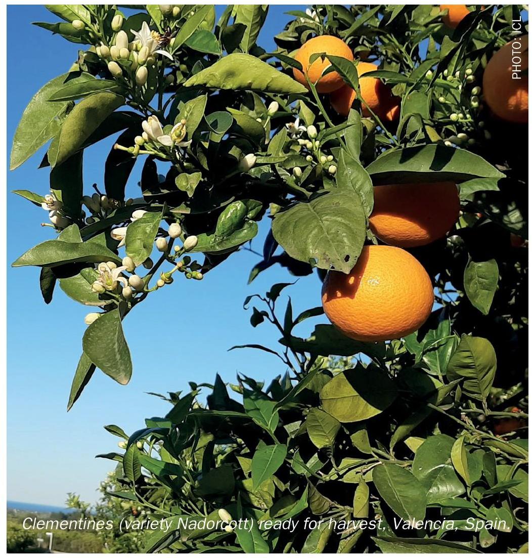 “Citrus fertilization programmes can also include ICL’s Polysulphate fertilizer, either applied together in combination with Agromaster or as a separate application. This multi-nutrient (K, Mg, Ca, and S) polyhalite product continues to fertilize citrus plants following rainfall events, as its special solubility pattern prolongs nutrient availability.”