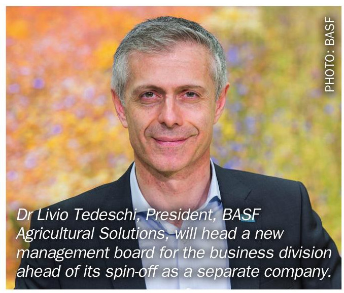 Dr Tedeschi will also become member of the board of executive directors of BASF SE with responsibility for the Agricultural Solutions segment. Commenting on these appointments and the company spin-off, he said: