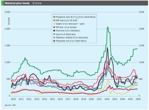 Ammonia sentiment was overtaken this week by the escalating Middle East conflict and the effective closure of the Strait of Hormuz, which left vessels unable to enter or exit the Arabian Gulf. With maritime trade frozen, price indications for prompt Middle East business largely stalled. In normal conditions, the sudden removal of Gulf export flows would point to sharply higher prices, particularly given the already-tight global availability and surging urea values, but participants said the absence of tradable cargoes made it difficult to pin down an indication. The immediate knock-on was felt East of Suez, where the supply shock pulled southeast Asian values back up to around $470-480/t f.o.b. Prevailing length in the market has been reportedly absorbed, with buying interest strongest from east Asia and India.